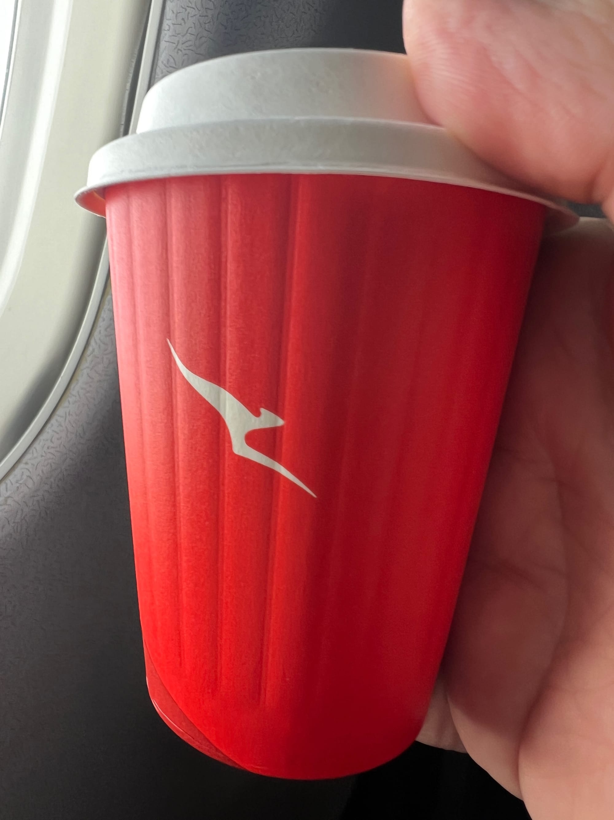 I recently flew from Canberra to Adelaide, and the meal offering is at the top of this page. It was a decent chicken curry. I took a glass, or three, of the white wine on offer, being the really quite excellent Saint and Scholar 2022 Pinot Gris. This wine went quite nicely with the curry, and kept going down quite nicely for the rest of the flight. Just before the descent started, the lovely flight attendant poured the remainder of my glass, and most of the second bottle into a takeaway coffee cup so I could keep enjoying it until we landed.